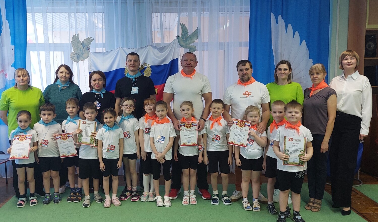 В преддверии праздника Дня защитника Отечества в нашей «Сказке» инструкторы по физической культуре Е.В. Белых и С.А. Соколова провели тематическое развлечение под девизом «Тяжело в учении – легко в бою», объединившее детей старшего дошкольного возраста и их родителей в атмосфере дружбы, состязания и патриотического вдохновения.