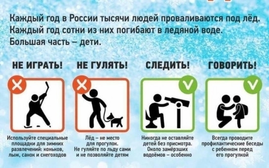 Ежегодно в осенне-зимний период на водных объектах гибнут люди, в том числе дети. Несоблюдение правил безопасности на водных объектах в осенне-зимний период часто приводит к трагедии. УВАЖАЕМЫЕ РОДИТЕЛИ! НЕ ОСТАВЛЯЙТЕ ДЕТЕЙ ОДНИХ!